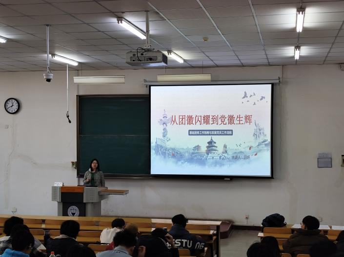 数学学院团委书记兼学工办主任冯妍围绕共青团基础团务工作与党员发展规范化流程,为学员开展专题授课。她将政策解读与实践指导相结合,深度解析了共青团组织建设和党员培育的核心要点。冯老师向全体学员寄语:要立足“政治进步三部曲”,努力实现从佩戴团徽到肩扛党旗的信仰升华,以实际行动书写新时代青年的成长答卷。